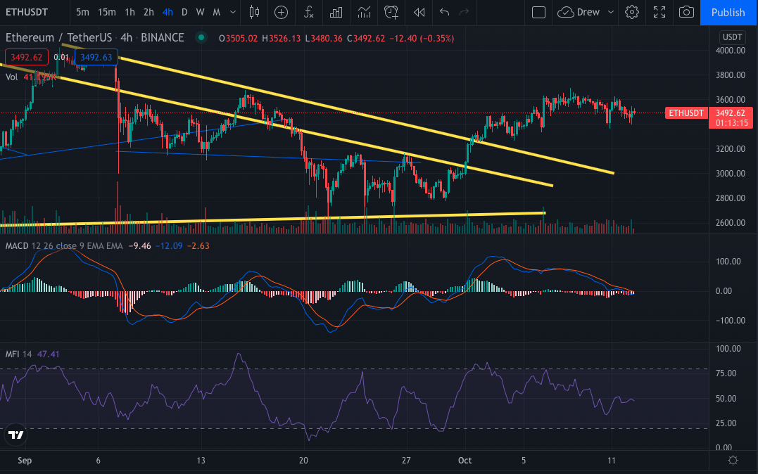 ETH 4 hr candle chart, approximately 2:45pm ET, 10/12/21.